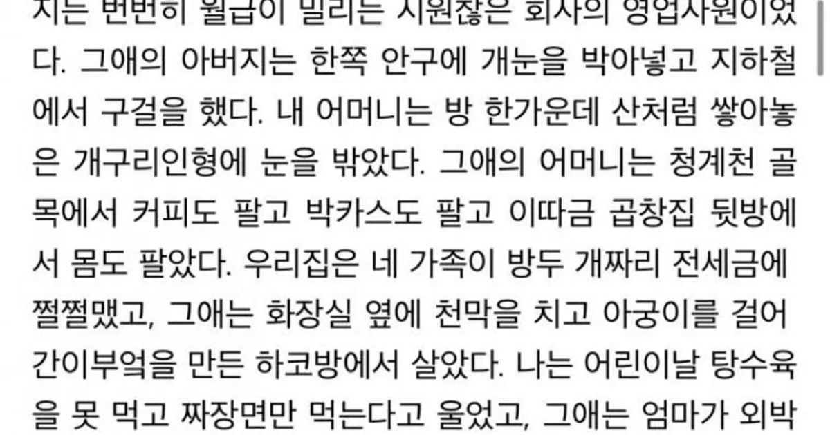 우리집은 가난했고, 그 애는 불행했다.