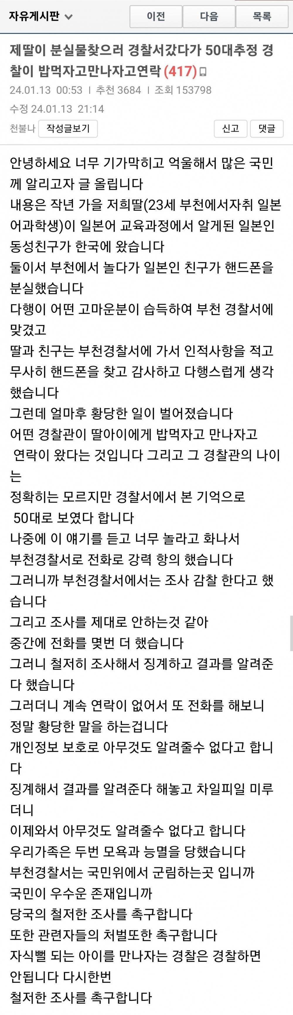 2 경찰서에서 습득 후 50대 경찰이 밥먹자 연락