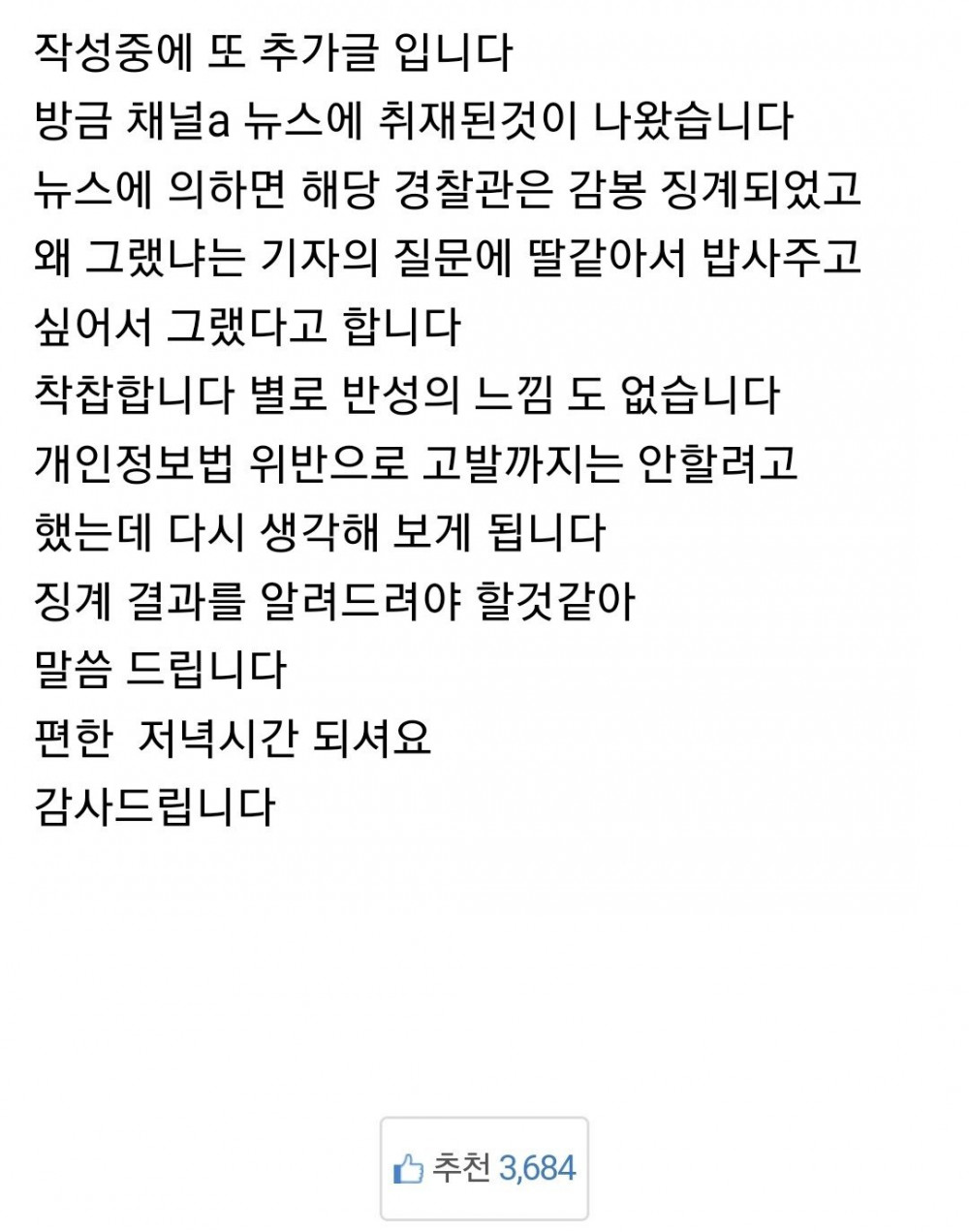 20대 여대생에 찝쩍댄 50대 스윗한 경찰