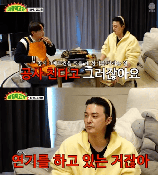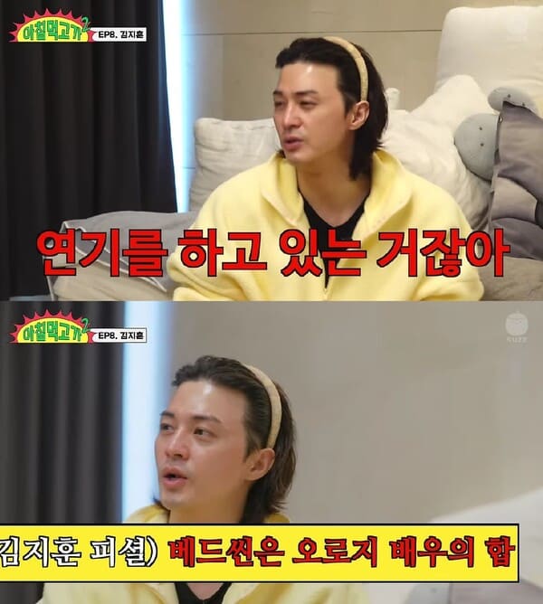 지난 6월 23일 유튜브 채널 '재밌는 거 올라온다'에 공개된 콘텐츠 ‘아침 먹고 가 EP.8’에는 김지훈이 출연해 MC 장성규와 함께 유쾌하면서도 적나라한 대화를 나눴다. 이날 방송은 김지훈의 일상 공간인 성수동 아파트에서 촬영됐으며, 자연스러운 분위기 속에서 김지훈은 배우 생활 중 가장 파격적이었던 순간인 ‘베드신’에 대해 입을 열었다.